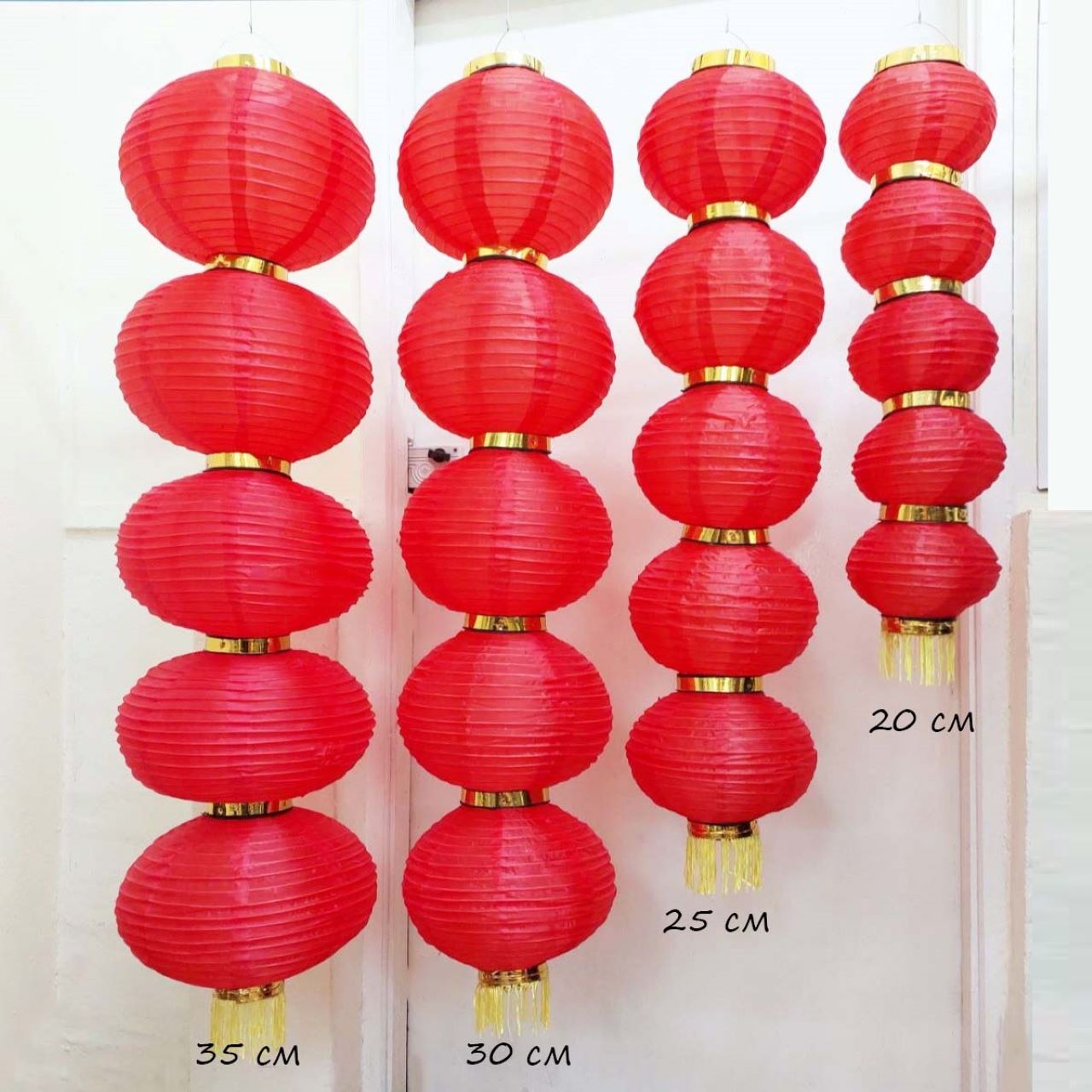 Круглый китайский фонарь состоит из пяти ярусов диаметром 25 см каждый.