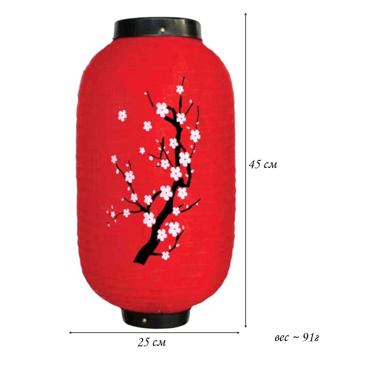 Китайский фонарь Цилиндр "Сакура" мелкая 25х45 см, красный