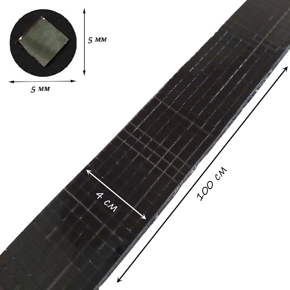 Лента самоклеящаяся зеркальная мозаика стекло, 4см х 1м 5х5мм, черный