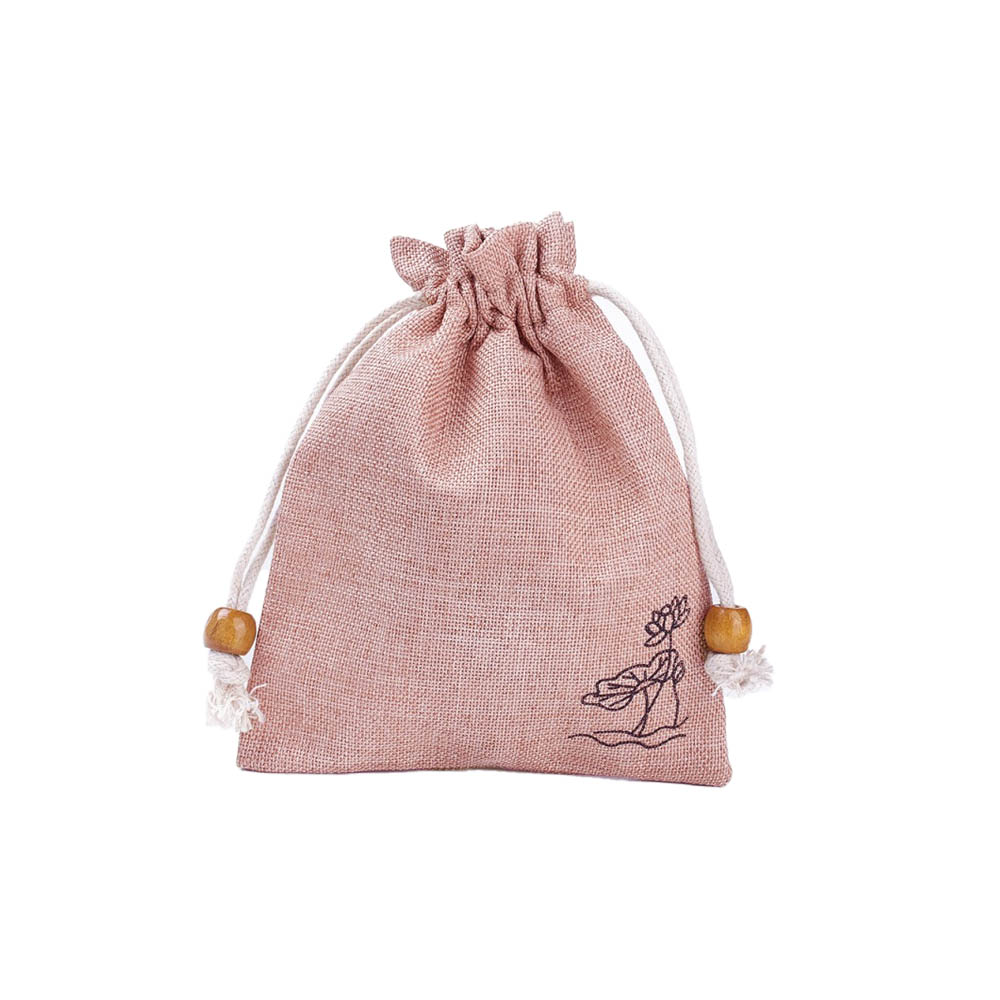 Мешочек из искусственного льна с орнаментом 15х12 см, нежно-розовый