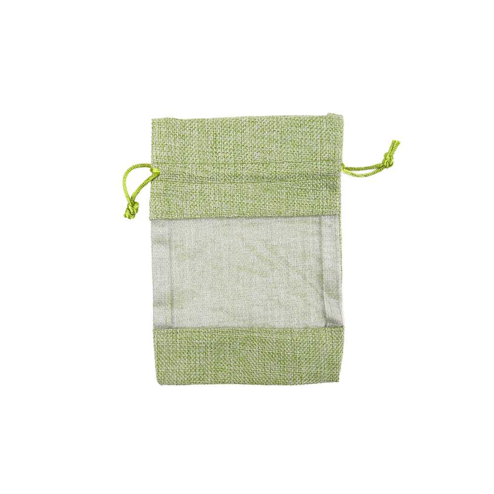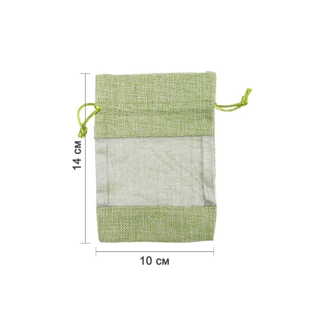 Мешочек из мешковины и органзы 10х14 см салатовый