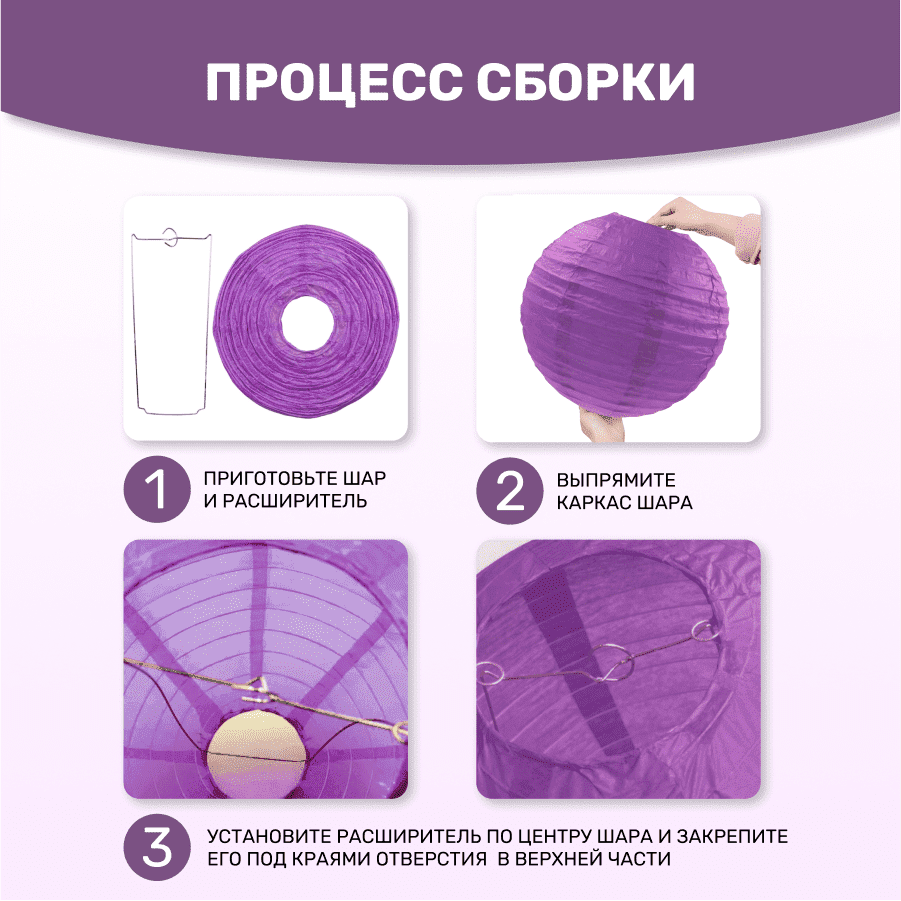 Комплект подвесные фонарики 40 см х 8 шт, сиреневый