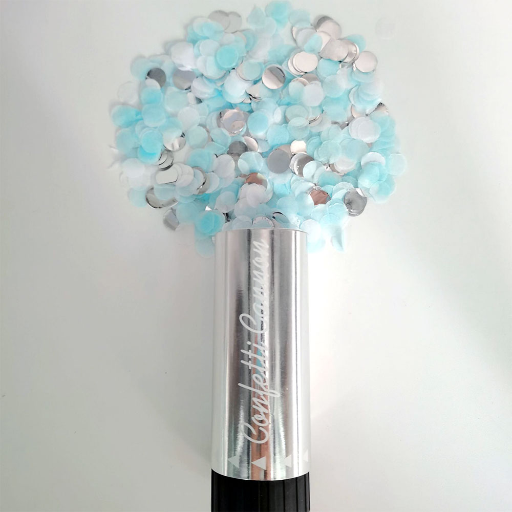 Хлопушка пружинная туба серебро 11 см микс голубой