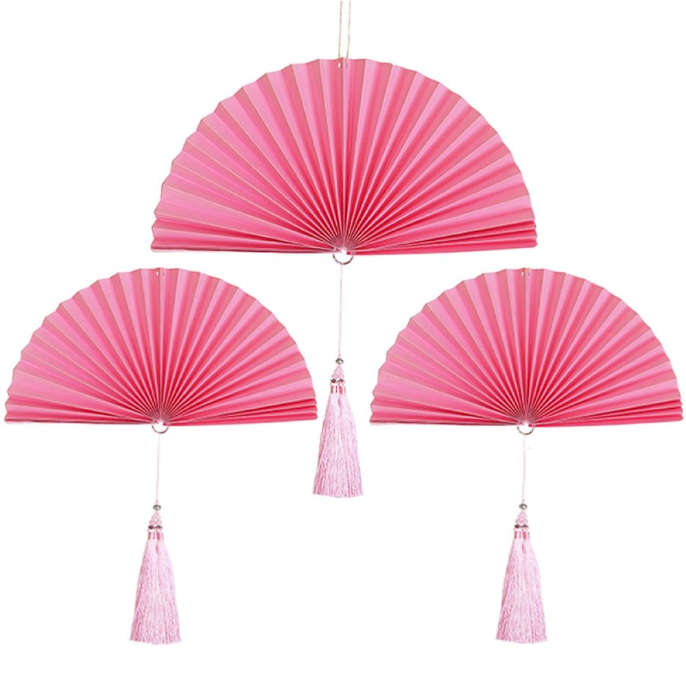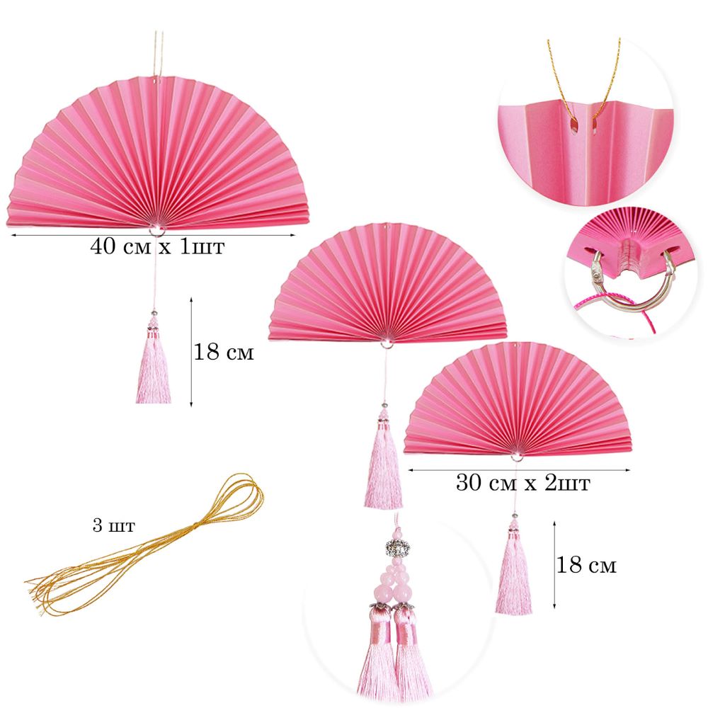 Веер-гармошка с кисточкой НАБОР 30см, 30см, 40 см, розовый