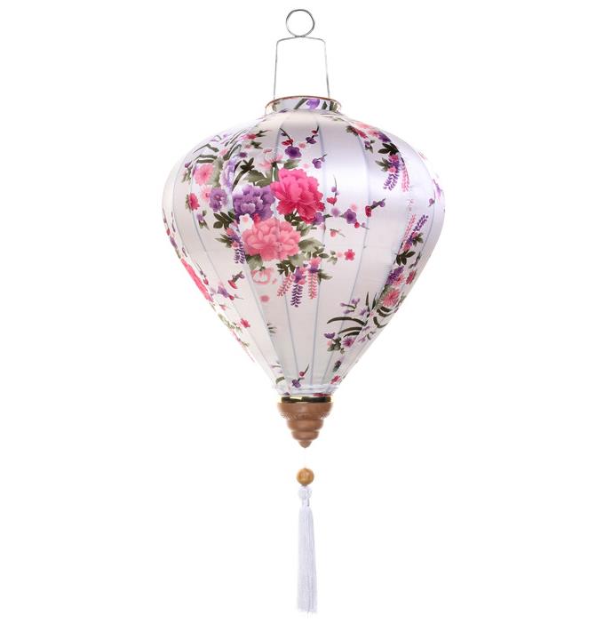 Это традиционные подвесные фонарики ручной работы, изготовленные из шелкового материала с элегантным цветочным узором, которые делают его изысканным и красивым.